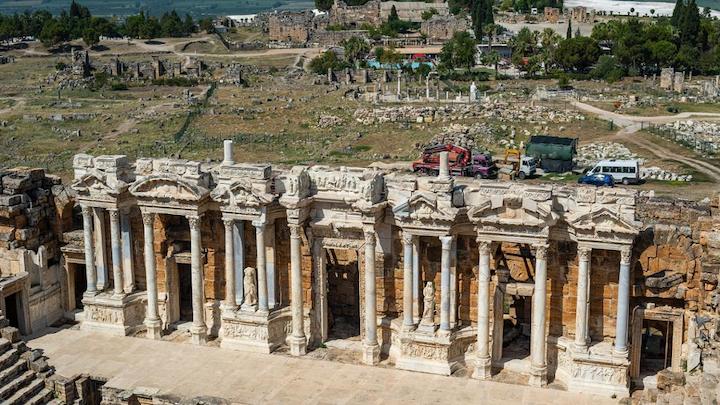 پس از کشف تراس هااز شهر باستانی هیراپولیس دیدن کنیدکه در بالای تراورتن ها قرار دارد. در اینجا می توانید با تاریخ جالب این شهر باستانی در دوره های بیزانس و رومی آشنا شوید و تئاتر رومی و حمام های حرارتی باستانی را ببینید که به خوبی حفظ شده اند و به موزه باستان شناسی تبدیل شده اند.